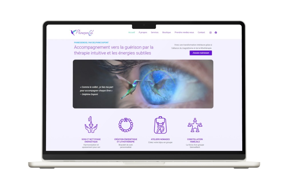 Réalisation du site sur lequel vous êtes et de celui de Phinessenciel.